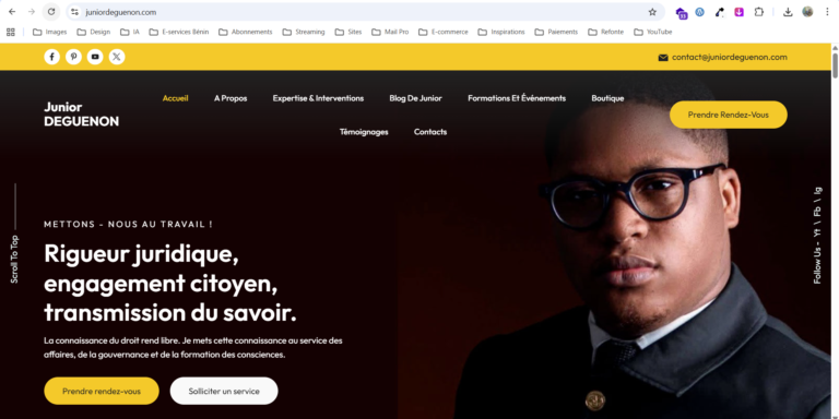 Site web de Junior DEGUENON Juriste • Consultant • Auteur • FormateurDroit de l’Entreprise | Compliance Officer J’ai conçu et mis en ligne le site web de Junior DEGUENON, juriste et consultant, dans l’objectif de valoriser son expertise, de structurer…